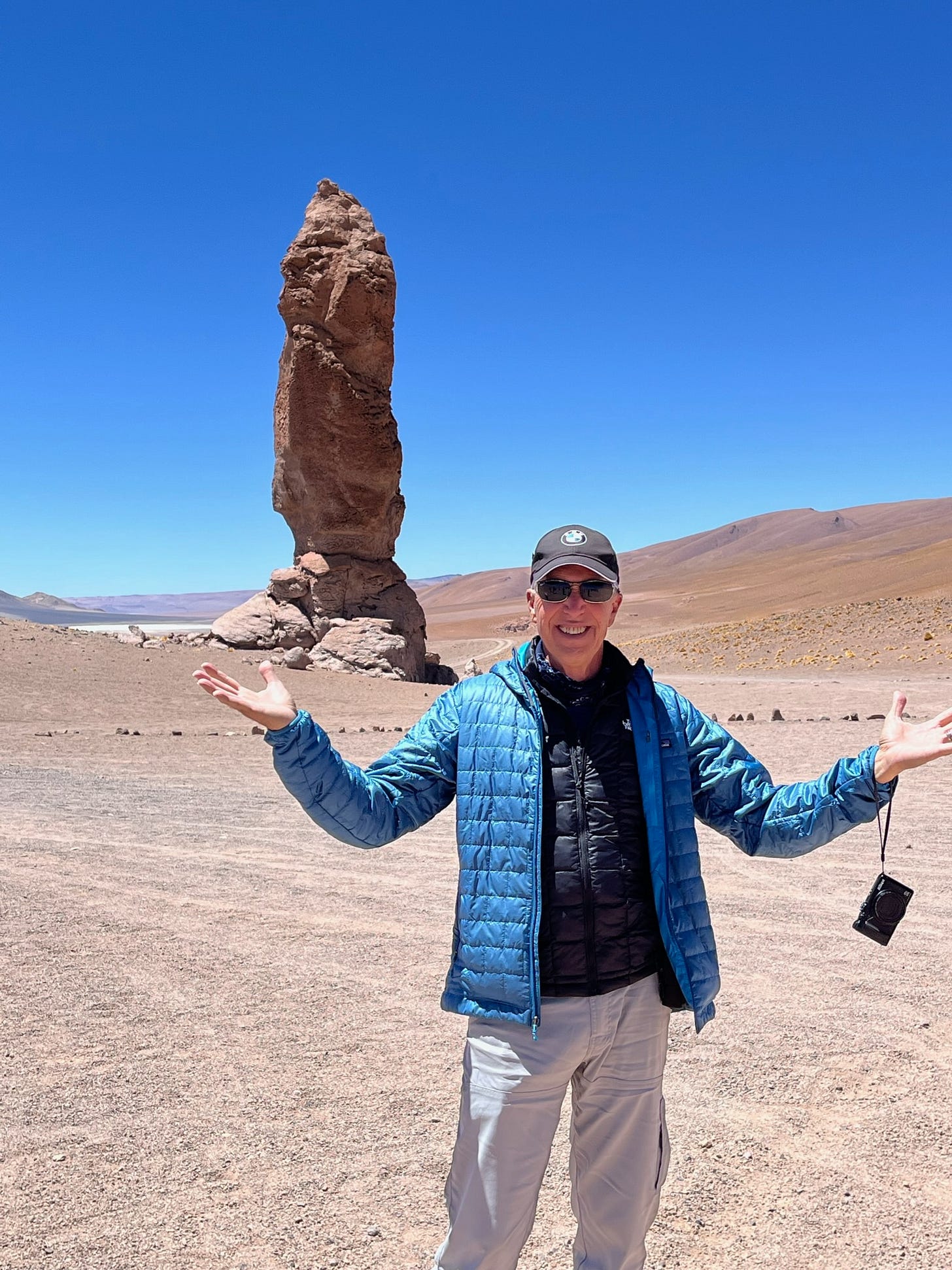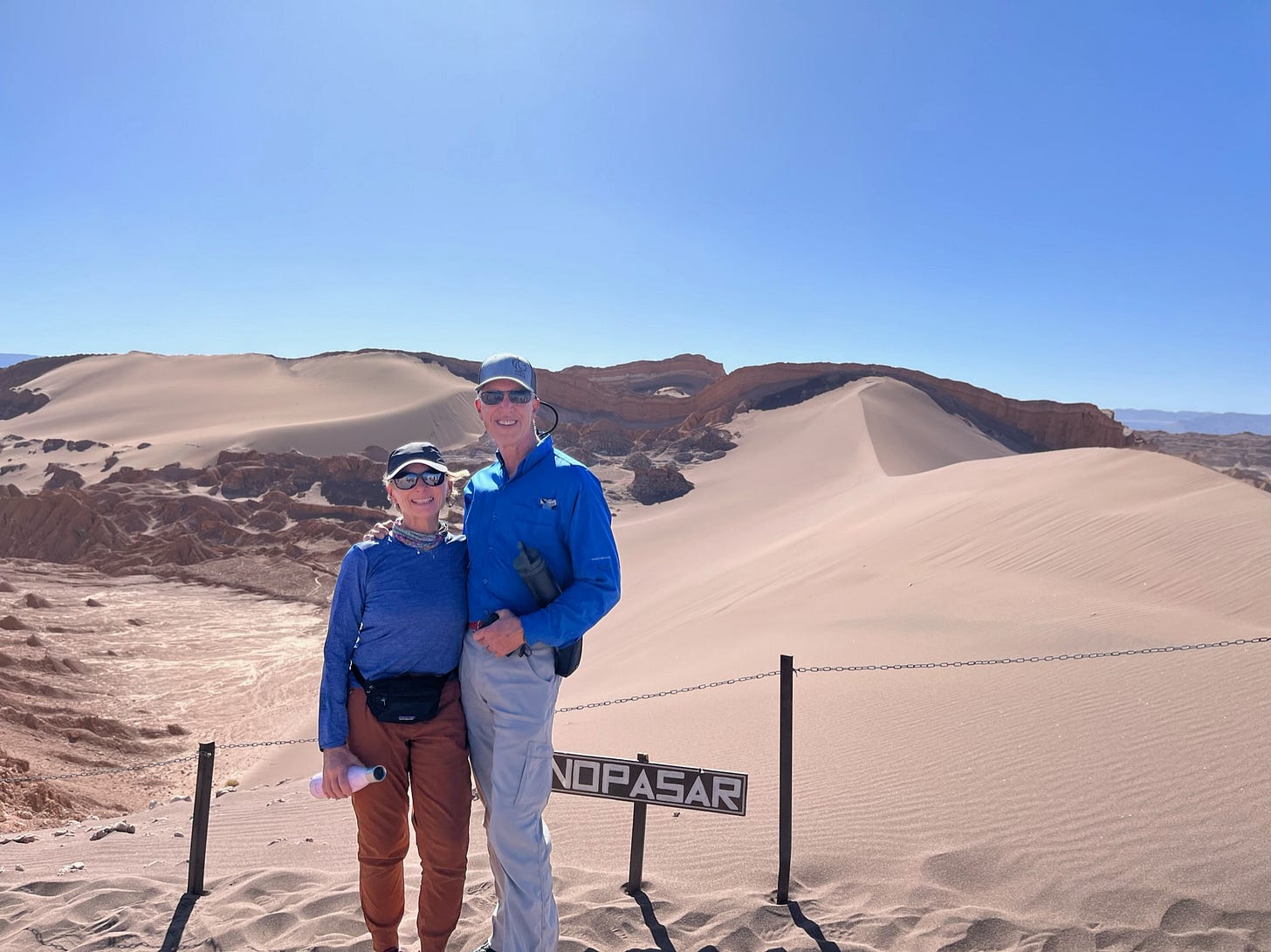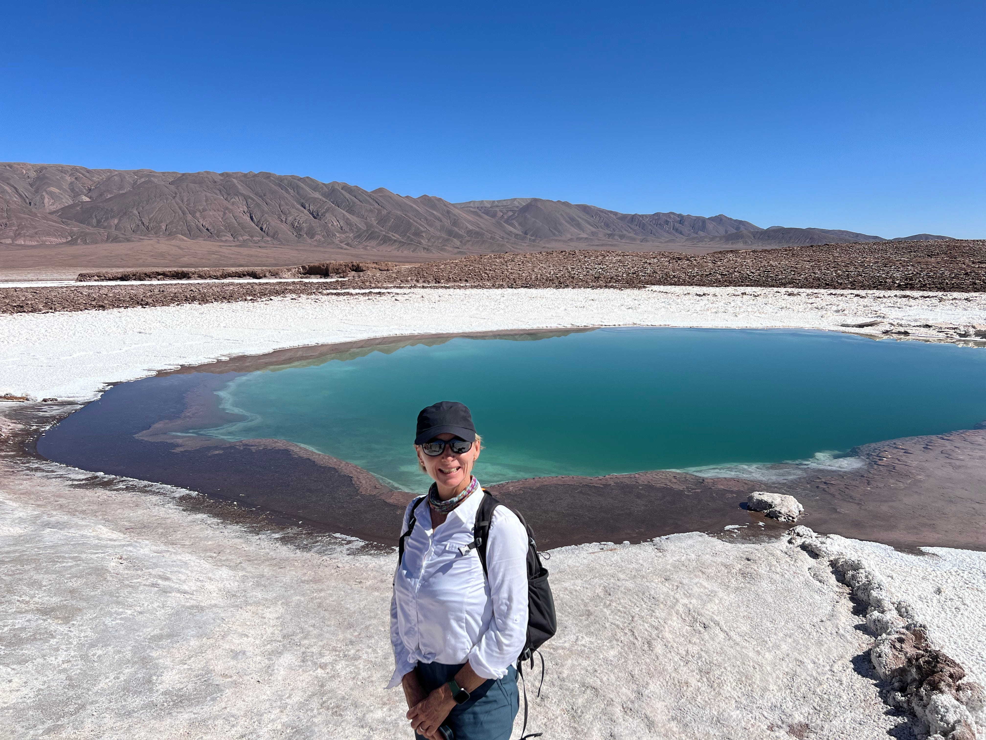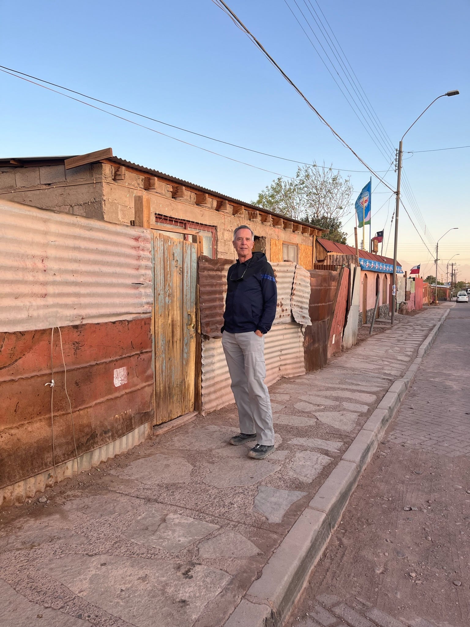 So what’s with the Atamacama and who the hell want’s to venture there? The Atacama is 41,000 square miles of the second driest non-polar desert in the world landing within two rain shadows. It’s been the site of numerous Mars testing sites, and the largest array of radio-telescopes in the World (Alma with 66 dishes). Beyond that however is the town of San Pedro de Atacama, a dry (you would have guessed that), rather ramshackle yet quaint town east of Calama, favored with underground waters from two rivers flowing down from the Andes. It is a virtual vortex for the young outdoor adventure crowd including mountain climbers, trekkers, long-distance bicyclists, mountain bikers, star gazers, and others who don’t fit the mold (like ourselves-never did find anyone near my age), but who thrive on the unexpected/ other worldly landscapes.